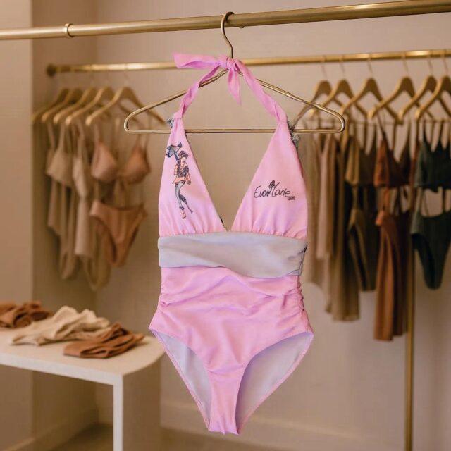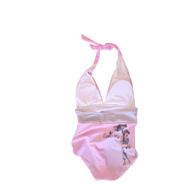 - chicer Badeanzug mit rosa Gürtelstreifen