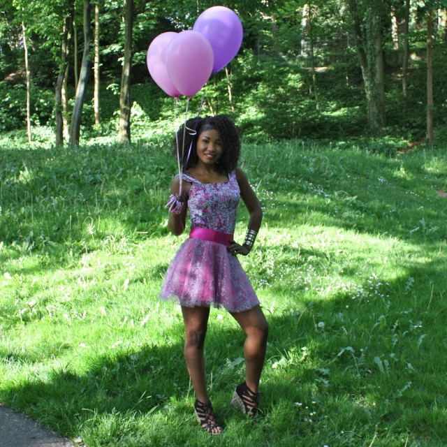 Oberstoff: eine Lage rosa Tüll mit Glitzer, eine Lage bestickte Spitze in Flieder